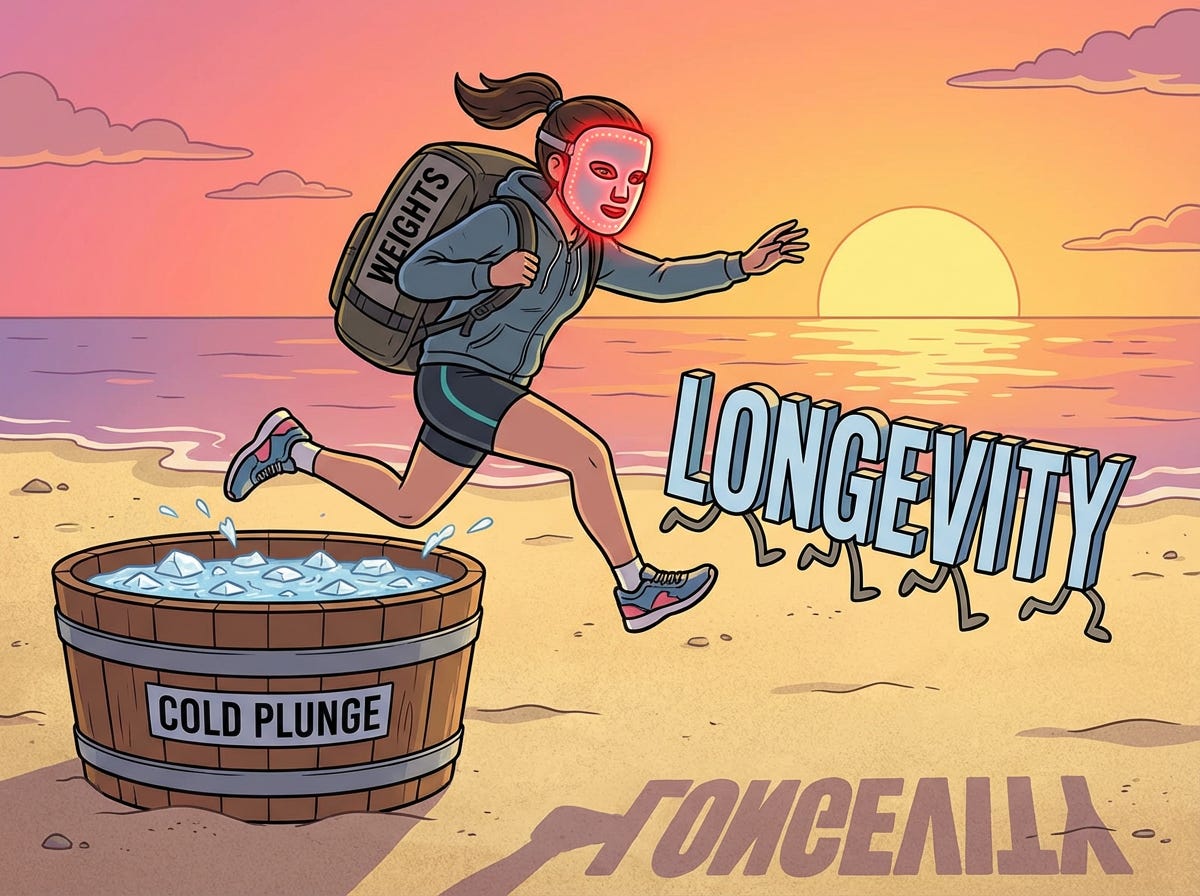 Every week, someone slides into my DMs asking about the “best longevity supplement” or whether they should be doing cold plunges at 5 AM or red light therapy or some peptide they saw a podcast bro take. And every week, I have to fight the urge to say: please, for the love of your mitochondria, stop.